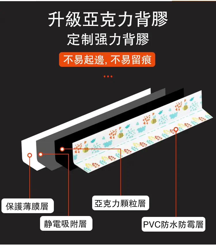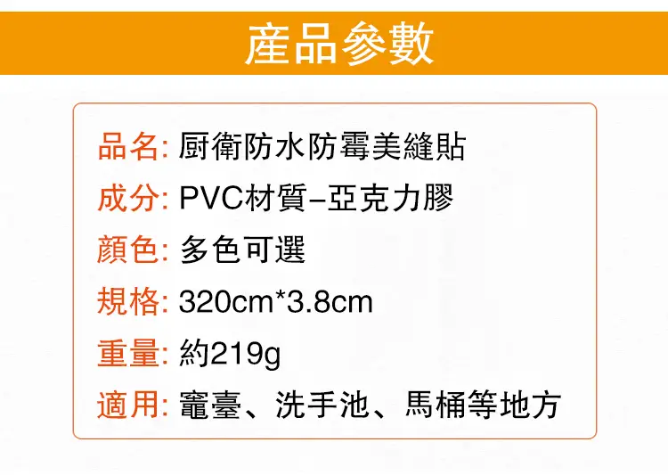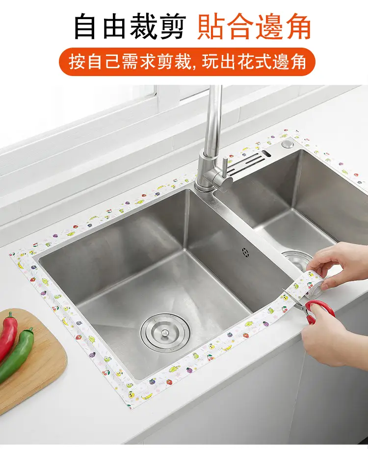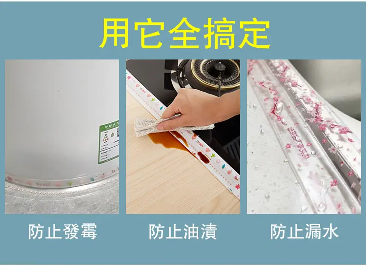 台灣美縫貼專賣店,馬桶貼粘貼式邊緣水池防水防霉美縫貼、廚衛封邊防水防油貼、水池邊角防霉防水膠帶、透明矽膠防水防霉美縫隙縫貼、廚房防水貼條推薦。有效防止灶台油漬、邊緣發霉、 縫隙漏水,完美解決廚房、衛生間的各種問題VHB材質,安全可靠。防水防霉美縫貼使用簡單方便一抹即貼,可有效防霉防塵防油汙,抹布一擦即淨打掃輕鬆,不但多花樣且功能多樣,可用於灶台洗手台馬桶,牆角等皆適用美觀衛生。